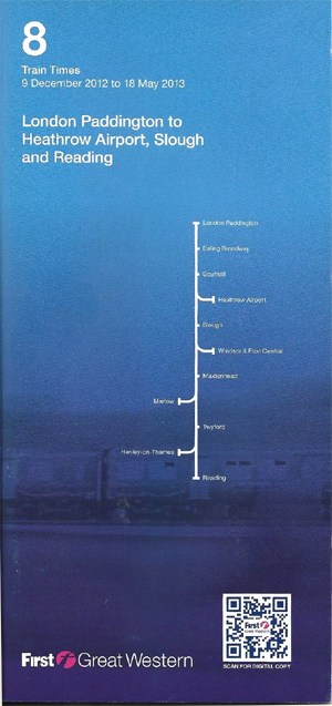 service area Intercity, outer suburban and regional services. London Paddington–Bristol–Weston-super-Mare/Westbury–Exeter–Paignton/Plymouth–Penzance/Newquay, Cardiff–Swansea–Carmarthen, Swindon–Cheltenham Spa/Worcester–Great Malvern, Bristol–Weymouth/Portsmouth/Brighton, Reading–Basingstoke–Gatwick Airport; branch lines to St Ives, Falmouth Docks, Newquay, Looe, Gunnislake, Barnstaple, Exmouth, Severn Beach, Bicester Town, Henley, Marlow, Windsor & Eton Central, Greenford