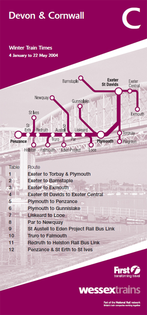 service area Regional (‘Alphaline’) services Portsmouth Harbour/Weymouth- Exeter-Plymouth-Penzance. Local and branch line services in Bristol, Devon and Cornwall.